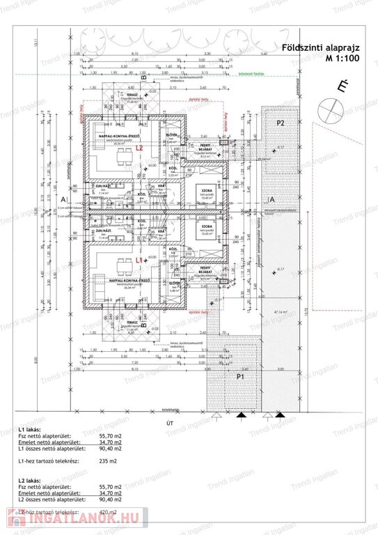 Enesén új építésű nappali + 3 szobás, 90,40 nm-es, kétszintes ikerház 420 nm-es telekrésszel kulcsrakész állapotban eladó.