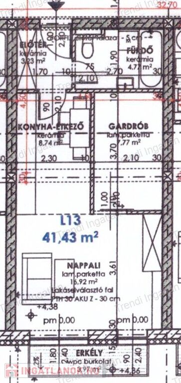 Az ingatlanban amerikai konyhás nappali, tágas 7,77 nm-es gardróbszoba, káddal felszerelt fürdőszoba, előtér található. A nappaliból 3,97 nm-es erkély nyílik. A konyha gépesített konyabútorral rendelkezik.
